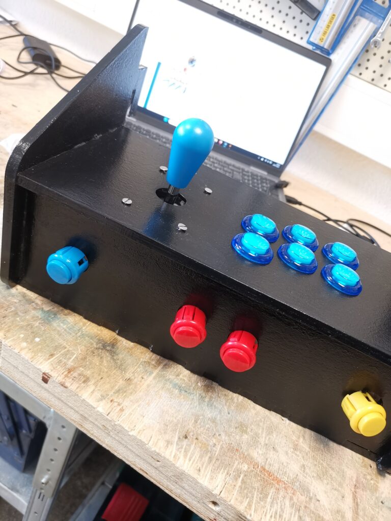 Unsere Arbeit war ein kontinuierlicher Prozess der Verfeinerung und intensiven Fehlerbehebung. Da der Aufbau dieser Konfiguration für uns Neuland war, bestand eine große Herausforderung darin, allen Anforderungen gerecht zu werden. In Kooperation mit der Baugruppe haben wir abschließend die maßgefertigten Arcade-Controller eingerichtet und konfiguriert, um ein authentisches Spielgefühl zu gewährleisten.